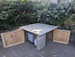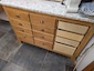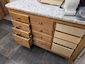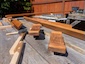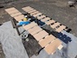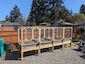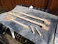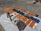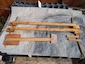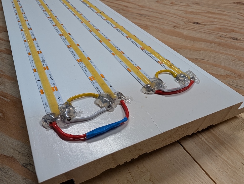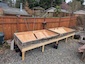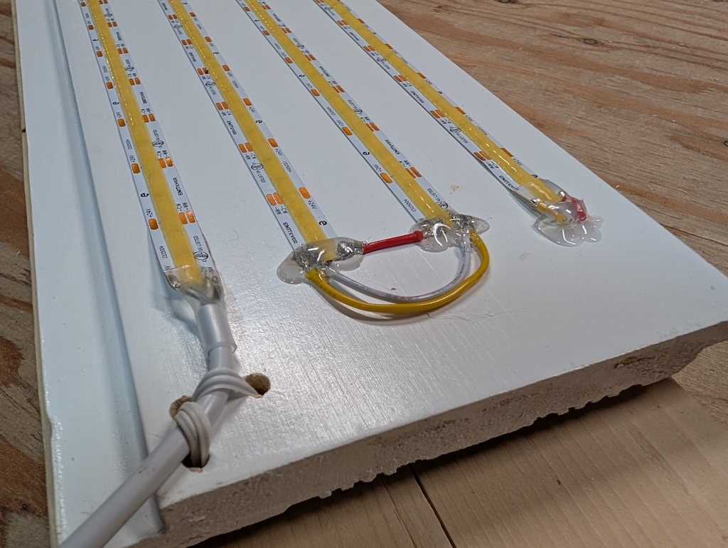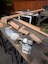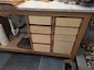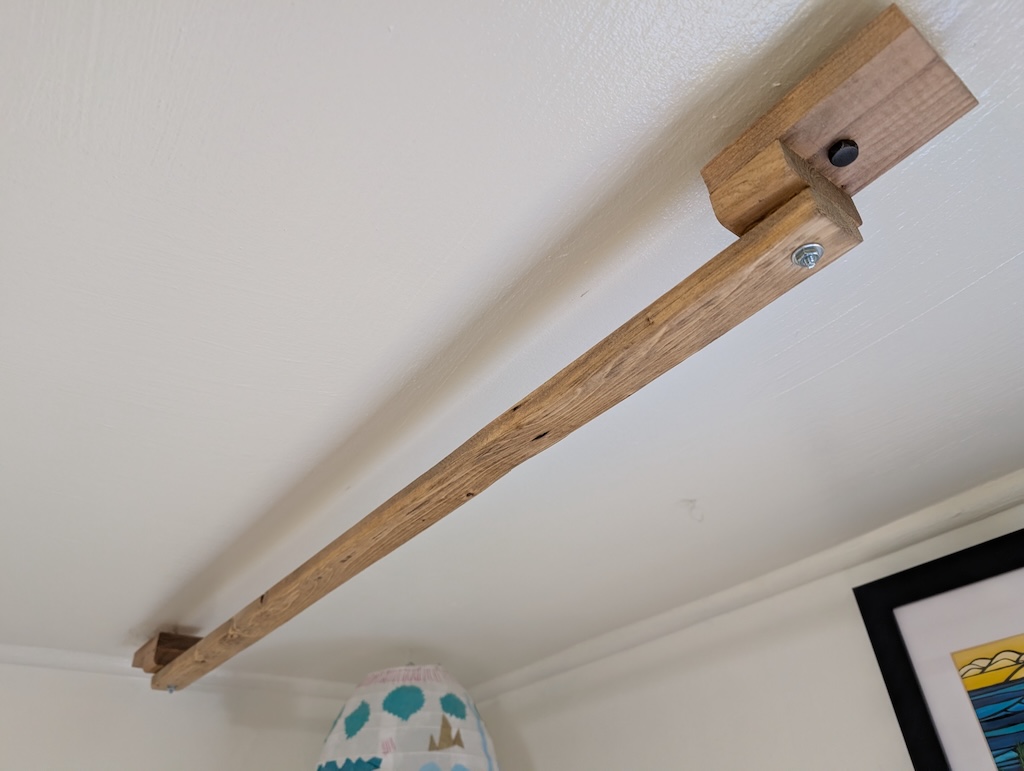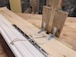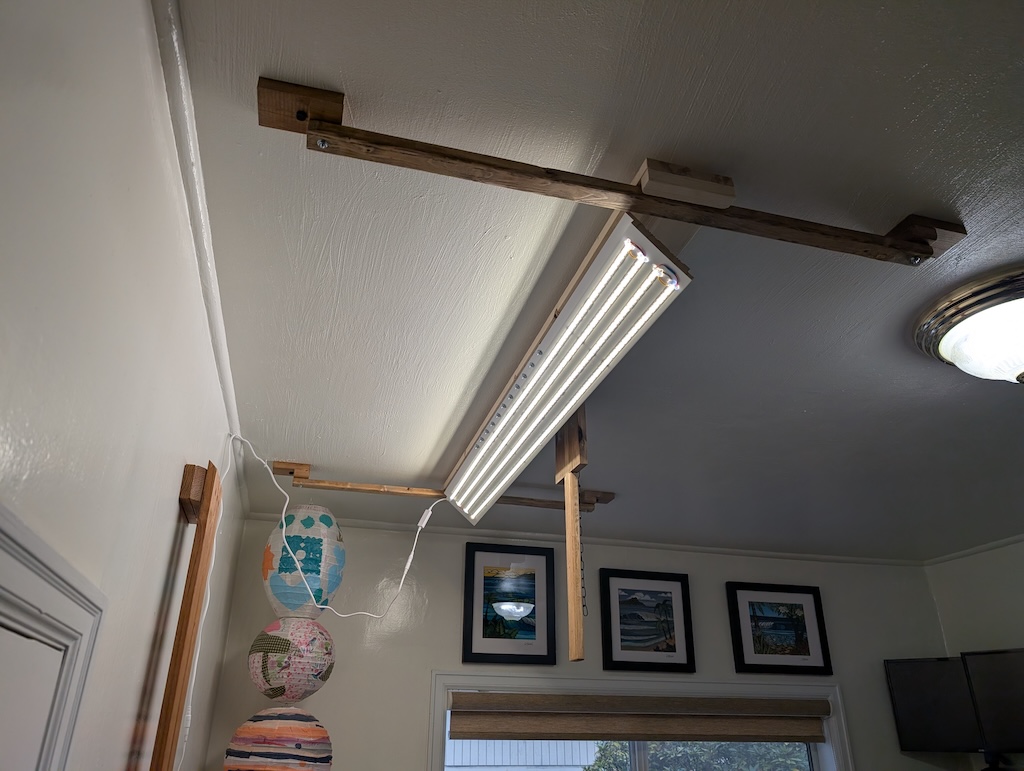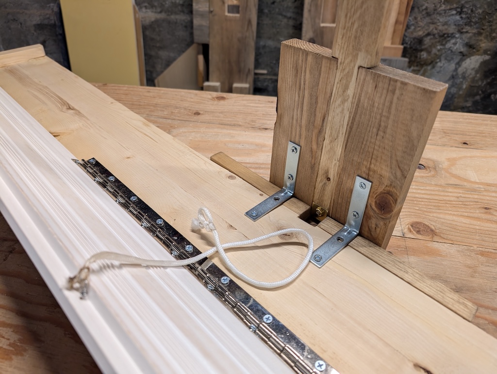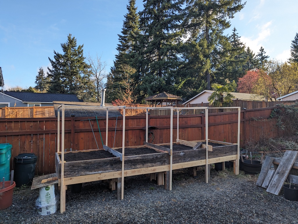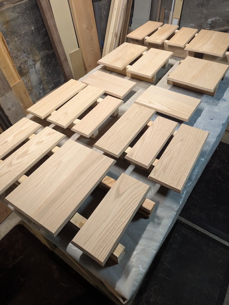 A lot of the items on this webpage started out on the Graphic Art page and then I split them out over here and grouped them with other "built" things. It's an imprecise distinction between things that are purely constructed and things that are an artistic endeavour. Art studio adjustable light fixturePainters want to avoid having the light source cast hand or brush shadows on the canvas, or reflect a glare into their eyes off the canvas. This light fixture, built around an LED light strip cut into four sections, enables me to move the light forward and backward, as well as adjust its tilt relative to the canvas. Brush holderPaint brushes are best dried horizontal and artists often use multiple brushes at once, so it is helpful to have a place to quickly store and retrieve them. Wall easelMost people are familiar with conventional painting easels, tripods or four-legged contraptions that hold a canvas in a vertical or tilted orientation at a desired height for a painter. However, when working on larger canvases in interior studios (as opposed to plein air painting outside), artists often rely on a wall easel, which rather than free-standing, is a rigid structure mounted on a wall. There are several variations on this theme, such as French cleats and such, but one of the most common designs replicates the most common plein air design of a vertical track with sliding horizontal ledges. That is the kind I built. Raised garden bed64-square foot (4'x16'), standing hight, raised garden bed, fully enclosed with chicken wire and bird netting. Second pizza ovenAfter selling the house with the previous pizza oven (also shown below on this page), I started building a second pizza oven at my next house. As of this writing, I have only built the stand and the hearth, essentially a concrete table. I currently use it as the work area for a propane pizza oven but I fully designed, and purchased materials and tools for, a new pizza oven. This one, if I ever build it, will be made of cast refractory concrete instead of individual bricks, but will function in exact the same way, wood-fired — although I have a notion of configuring it to pre-fire (warm up) with gas, switching to a wood fire when actually cooking. Or perhaps I'll never build it. Who knows? Walnut double-window sill with alder casingFor my bathroom remodel, I did a lot of finishing work myself, such as the window casing in my daughter's new bedroom. Walnut window sill with birdseye maple casingFor my bathroom remodel, I did a lot of finishing work myself, such as the window casing in the new nook of the master bedroom. Quartzite window sill with tile casingFor my bathroom remodel, I did a lot of finishing work myself, such as one of the windows in the bathroom. Ceiling beam mouldingFor my bathroom remodel, I did a lot of finishing work myself, such as the moulding on this new support beam that protrudes through the dining room ceiling. Door mouldingFor my bathroom remodel, I did a lot of finishing work myself, such as eight door mouldings (each side of four new doors), consisting of Douglas Fir cut with nifty miter angles along the top and attached with rustic looking square-drive black oxide screws. Bathroom vanitiesFor my bathroom remodel, I did a lot of finishing work myself. I chose to build two bathroom vanities from scratch rather than purchase stock vanities, partly to meet eccentric size preferences that couldn't be had off the shelf, partly to save money, partly to satisfy my picky aesthetics, which I found difficult to achieve shopping around, and partly just for fun. Outdoor workbenchI needed a place to potted plants before bringing them indoors or to do various yard work (mostly plants again, the occasional gutter repair, etc.) and I was tired of kneeling on the ground for such work, so I built this bad boy. I don't have a final photo, but I cut the top pieces to fit the frame before screwing them down. Three shed doorsWhen I bought my house, the shed had three doorways, but no doors at all. So I built some. Catio and window cat doorI built my cat a catio with a window cat door, to which I later attached an IMU-enabled microcontroller with wifi to data-collect the timings of his exits and reentries. A few years after building it, just after having the house roof replaced during the bathroom remodel, I used some leftover shingle to put a proper shingle roof over the cedar roof. I don't have a photo of that. I also don't have a photo of the electronics for detecting door events. Workbench #2When I sold my previous house, I left the workbench I built (see further below) in the basement and built a new one at my next house, shown here (with one of the shed doors under construction on top of the bench). Patinated copper sheet back plates for bedroom furnitureI added patinated copper sheet back plates to my Mexican solid wood bedroom furniture set. The pieces are attached with copper nails and the wrought iron handles were removed and then replaced after attaching the copper backing. Talavera stair risersI made the talavera stair risers for our house extension. Stair railingI built the stair railing for our house extension (the contractor put in the newel post but I made the top and bottom rails and the balusters). The balusters are 3/4" copper pipe with an accelerated patina. The pipe was left over from the deck railing balusters that had been removed for the extension. Etching and copper-dial mechanical watchesI built an electro-etching tool (little more than a power supply. Here are my initial experiments. My etching artwork has consisted of copper watch dials for my microbrand mechanical watches (Badlands Watches). Please visit the Badlands website to see more photos. Wood-fired brick pizza ovenThis project was such an enormous undertaking that it has its own webpage. Please go there to see the full history of the project, including numerous photos of the construction process. My ex-wife's engagement ring and our wedding bandsBoth 